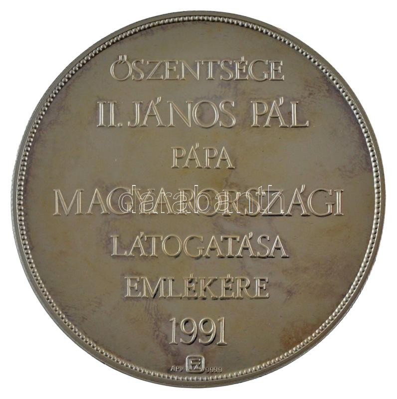 Fülöp Zoltán (1951-) 1991. ‘Őszentsége II. János Pál pápa magyarországi látogatása emlékére 1991’ Ag emlékérem dísztokban (157g/0.999/42,5mm) T:2 (PP) felületi karc