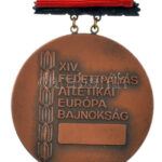 Gáll Gyula (1939-) 1983. ‘Budapest 1983 / XIV. Fedettpályás Atlétikai Európa Bajnokság’ bronz díjérem szalagon, eredeti tokban (60mm) T:1-