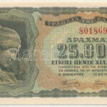 Görögország 1943. 25.000D T:I-,II Greece 1943. 25.000 Drachmai C:AU,XF Krause P#123<a href="https://www.darabanth.com/hu/gyorsarveres/432/kategoriak~Numizmatika/Kulfoldi-bankjegyek~1500014/Gorogorszag-1943-25000D-TI-II-Greece-1943-25000-Drachmai-CAU
