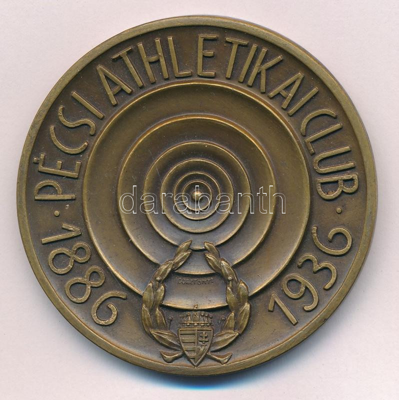 Gosztonyi Alice (1900-1970) 1936. ‘Pécsi Athletikai Club alapításának 50. évfordulója’ kétoldalas bronz emlékérem, peremén ‘LUDVIG’ gyártói jelzéssel (61mm) T:2 Hungary 1936.’50th Anniversary of the Athletic Club of Pécs’ Br commemorative medallion, ‘LUDV