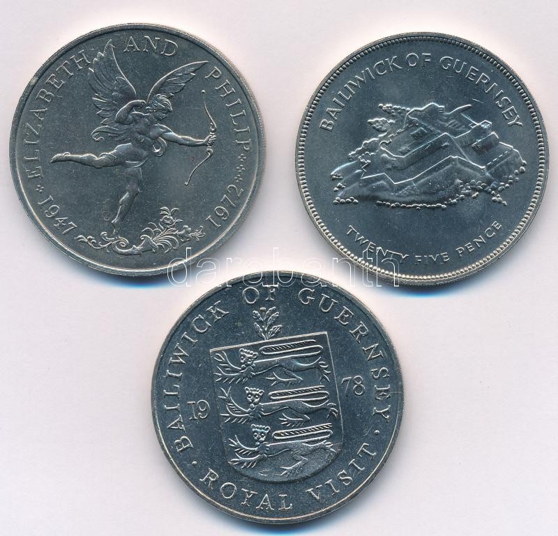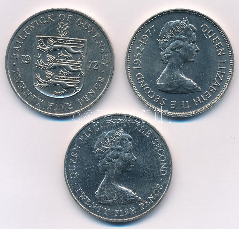 Guernsey 1972-1978. 25p Cu-Ni (3xklf) T:1-,2 Guernsey 1972-1978. 25 Pence Cu-Ni (3xdiff) C:AU,XF Krause KM#26, KM#31, KM#32<a href="https://www.darabanth.com/hu/gyorsarveres/435/kategoriak~Numizmatika/Kulfoldi-fem-es-ezustpenzek~1500031/Guernsey-197