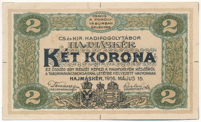 Hajmáskér / hadifogolytábor 1916. május 15. 2K sorozat- és sorszám nélkül, illesztővonalakkal (formulare) T:I- fo. Adamo HHH-2.5.2<a href="https://www.darabanth.com/hu/gyorsarveres/432/kategoriak~Numizmatika/Papir-es-fem-szuksegpenzek~1500006/Hajmas