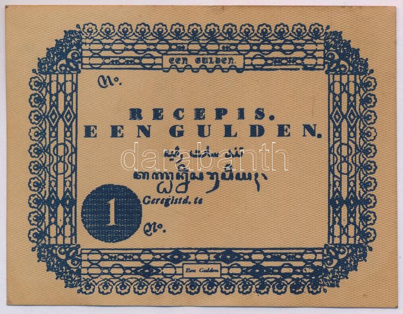 Holland Keleti India ~1840. 1G bankjegy feltehetően korabeli másolata lezárt műanyag tokban T:I,I- folt Netherlands East Indies ~1840. 1 Gulden, presumably contemporary copy in a sealed plastic case C:UNC,AU spot<a href="https://www.darabanth.com/hu