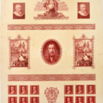 Horváth Endre (1896-1954) festőművész és grafikus különböző munkáinak rézmetszet tervei egy lapon, közte 1940. 2P hátlapi terv, Vajdahunyad vár, Szent Imre bélyegterv (344x285mm) T:AU sarokhajlás, folt / Several copperplate