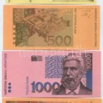Horvátország 1993. 5K + 20K + 50K előlapi színpróba (3db) + 200K + 500K + 1000K előlapi és hátlapi színpróba (6db) T:I-II Croatia 1993. 5 Kuna + 20 Kuna + 50 Kuna all front color trial (3pcs) + 200K + 500K + 1000K all front and back color