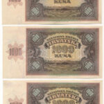 Horvátország / Független Horvát Állam 1941. 1000K (3db) sorszámkövetők és közeli sorszám ‘D0064585, D0064590, D0064591’ T:I-,II egyiken nyomdai papírránc Croatia / Independent State of Croatia 1941. 1000 Kuna (3pcs) consecutive serials and close serial nu