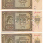 Horvátország / Független Horvát Állam 1941. 1000K (3db) sorszámkövetők és közeli sorszám ‘D0064585, D0064590, D0064591’ T:I-,II egyiken nyomdai papírránc Croatia / Independent State of Croatia 1941. 1000 Kuna (3pcs) consecutive serials and close serial nu