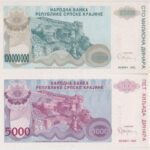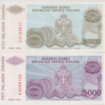 Horvátország / Krajna Szerb Köztársaság / Knin 1993. 5000D + 100.000.000D T:I Croatia / Republic of Serbian Krajina / Knin 1993. 5000 Dinara + 100.000.000 Dinara C:UNC<a href="https://www.darabanth.com/hu/gyorsarveres/432/kategoriak~Numizmatika/Kul