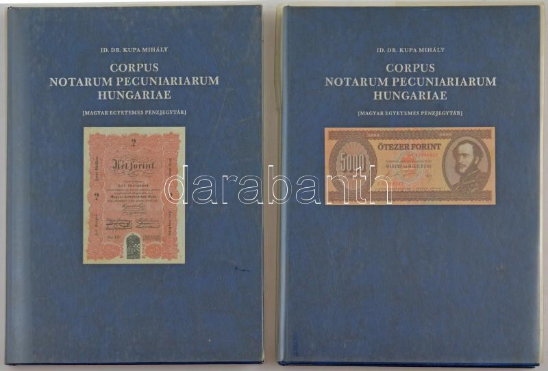 Id. Dr. Kupa Mihály: Corpus Notarum Pecuniariarum Hungariae (Magyar Egyetemes Pénzjegytár) I. és II. kötet. Budapest, 1993. Használt, de jó állapotban, a műanyag védőborító sérült