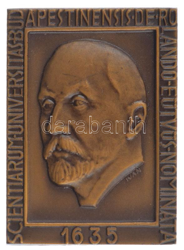 Iván István (1905-1968) 1960. ‘325 éves az Eötvös Lóránd Tudományegyetem’ egyoldalas, bronz plakett, eredeti tokban (55x40mm) T:1-