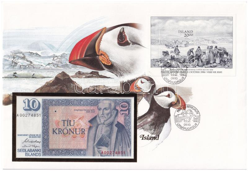 Izland 1961. 10K borítékban bélyeggel, bélyegzéssel T:I Iceland 1961. 10 Kronur in envelope with stamp and cancellation C:UNC<a href="https://www.darabanth.com/hu/gyorsarveres/435/kategoriak~Numizmatika/Ermes-es-bankjegyes-boritekok~1000004/Izland-1