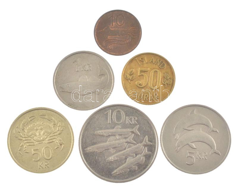 Izland 1973-1987. 10a-50Kr (6xklf) T:vegyes Iceland 1973-1987. 10 Aurar – 50 Kronur (6xdiff) C:mixed<a href="https://www.darabanth.com/hu/gyorsarveres/437/kategoriak~Numizmatika/Kulfoldi-fem-es-ezustpenzek~2500001/Izland-1973-1987-10a-50Kr-6xklf-Tve