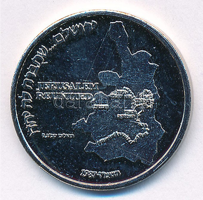Izrael 1988. ‘Újraegyesített Jeruzsálem’ kétoldalas fém emlékérem ‘Üdvözlet Jeruzsálem-Izraelből’ héber és angol nyelvű üdvözlőkártyával (25mm) T:1- karc Israel 1988. ‘Jerusalem Reunited’ two-sided metal commemorative token with ‘Season’s Greetings from J