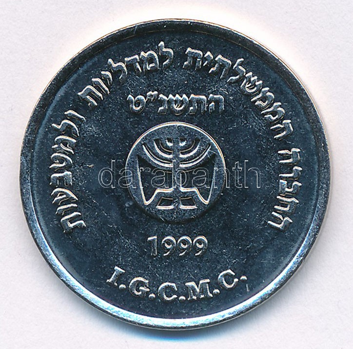 Izrael 1999. ‘Újévi érem’ kétoldalas Ni emlékérem, ‘Boldog Új Évet’ héber és angol nyelvű üdvözlőkártyával, borítékban (27mm) T:1- kis ph Israel 1999. ‘New Year token’ two-sided Ni commemorative token with ‘Happy New Year’ card in hebrew and in english, i