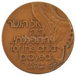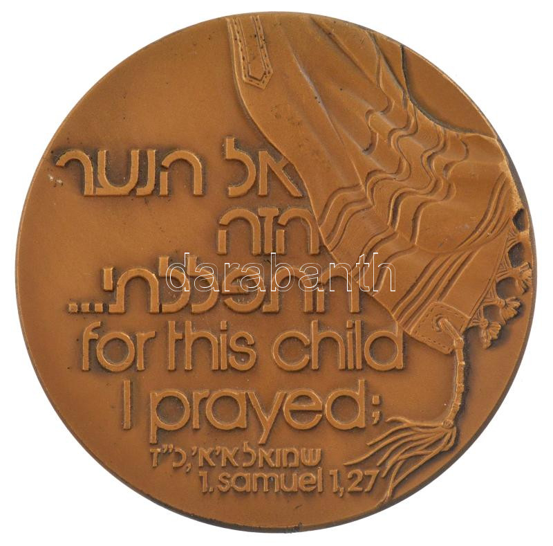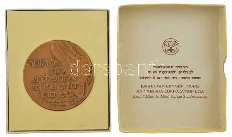 Izrael DN ‘ Ezért a fiúért könyörögtem, és az Úr megadta kérésemet… – Sámuel 1, 27’ kétoldalas bronz emlékérem, peremen jelzett és sorszámozott ‘1854’, eredeti kartontokban (59mm) T:1- patina, kis ph Israel ND ‘…for this child I prayed – Samuel 1, 27’