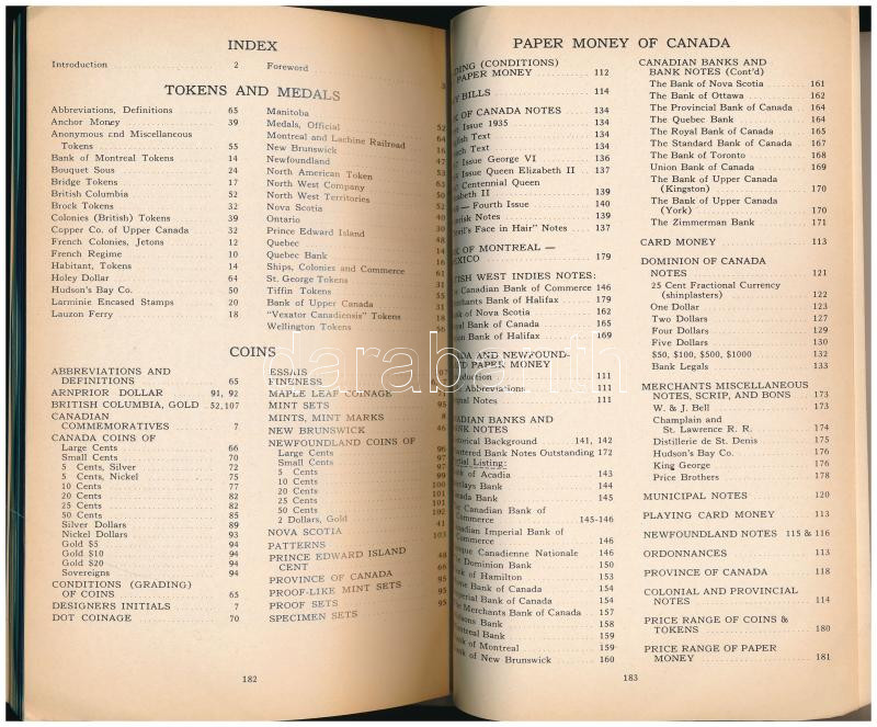 J.E. Charlton: Standard Catalogue of Canadian Coins, Tokens and Paper Money 1974 (Kanadai érmék, zsetonok és papírpénzek katalógusa). 22. javított és bővített kiadás, Charlton International Publishing Inc, Torontó, 1973. Használt, jó