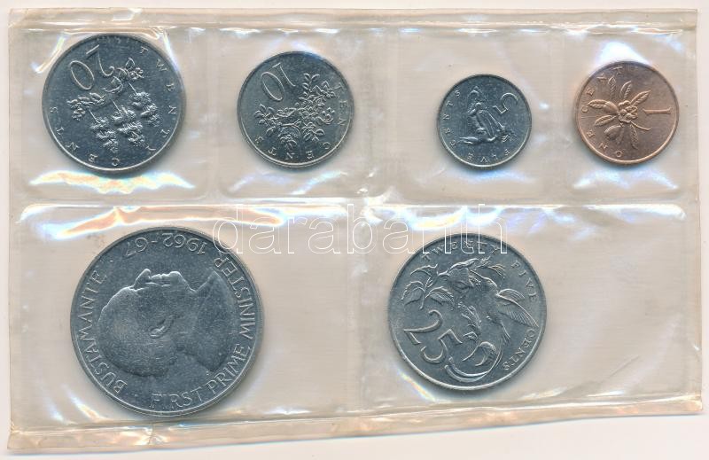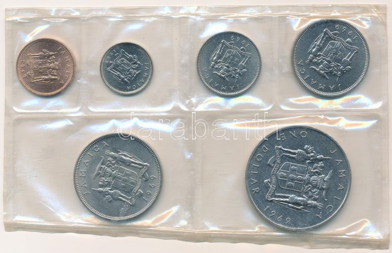 Jamaica 1969. 1c-1$ (6xklf) forgalmi szett fólia tokban T:1- patina Jamaica 1969. 1 Cent – 1 Dollar (6xdiff) coin set in foil pack C:AU patina<a href="https://www.darabanth.com/hu/gyorsarveres/416/kategoriak~Numizmatika/Kulfoldi-fem-es-ezustpenzek~1