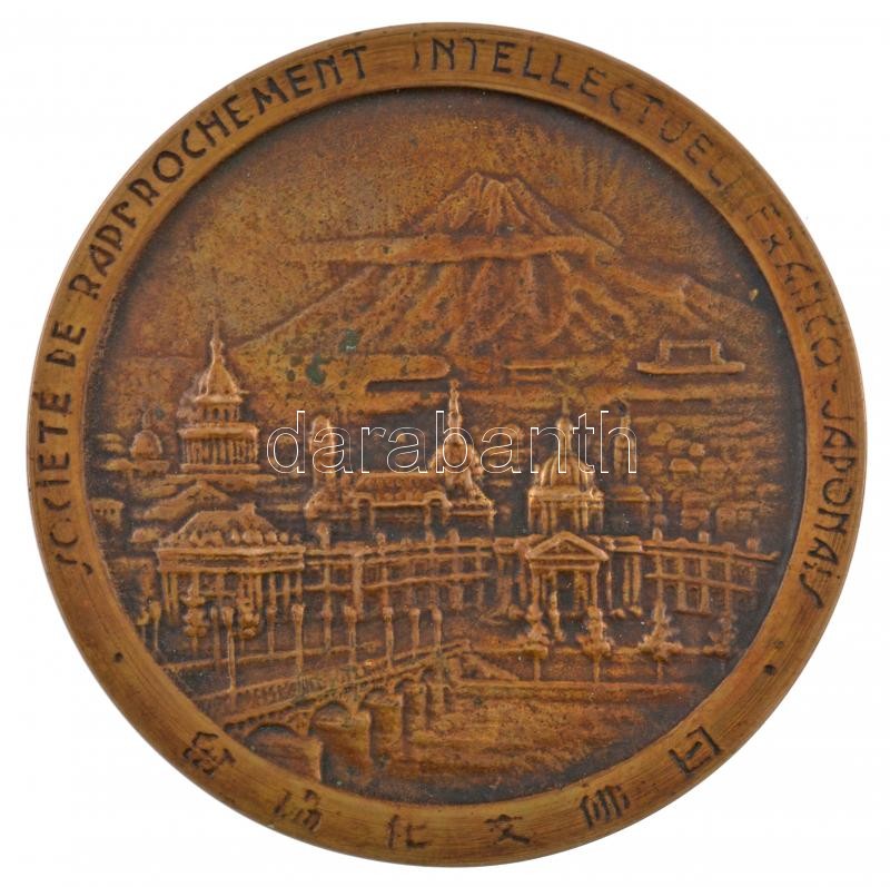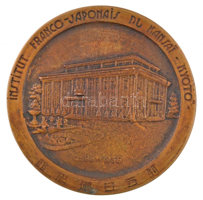 Japán 1936. ‘SOCIÉTÉ DE RAPPROCHEMENT INTELLECTUEL FRANCO-JAPONIAS / INSTITUT FRANCO-JAPONAIS DU KANSAI KYOTO (Francia-Japán Társaság / Francia-Japán Intézet Kiotó, Kansai régió)’ kétoldalas, öntött bronz emlékérem (62mm) T:2 Japan 1936. ‘SOCIÉTÉ DE RAPPR
