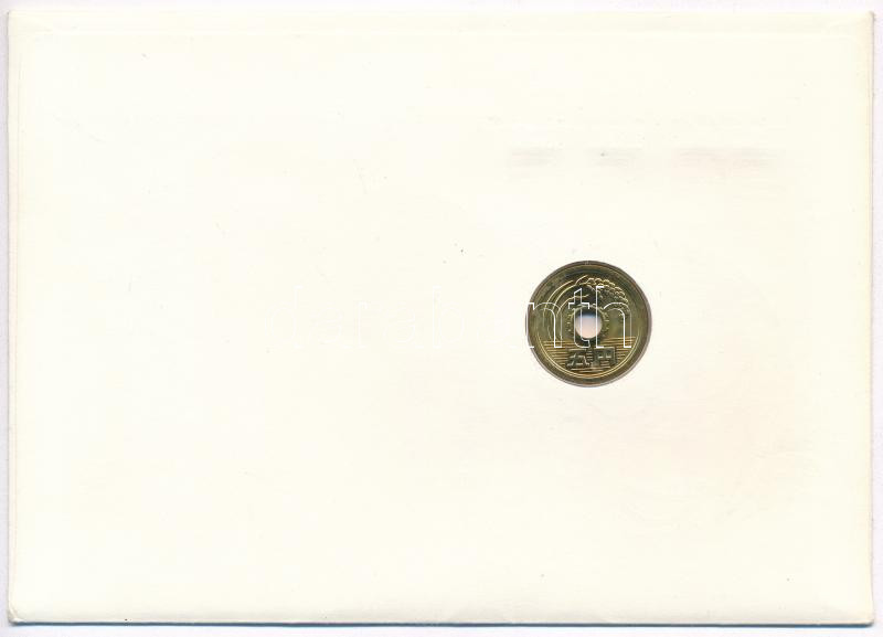 Japán DN 5Y érme borítékban, bélyegekkel és bélyegzéssel T:1 Japan ND 5 Yen coin in letter with stamps and overprint C:UNC<a href="https://www.darabanth.com/hu/gyorsarveres/436/kategoriak~Numizmatika/Ermes-es-bankjegyes-boritekok~1500004/Japan-DN-5Y