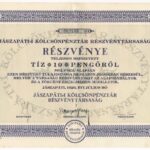 Jászapáti 1926. ‘Jászapáti-i Kölcsönpénztár Részvénytársaság’ részvénye 10P-ről szelvényekkel T:II
