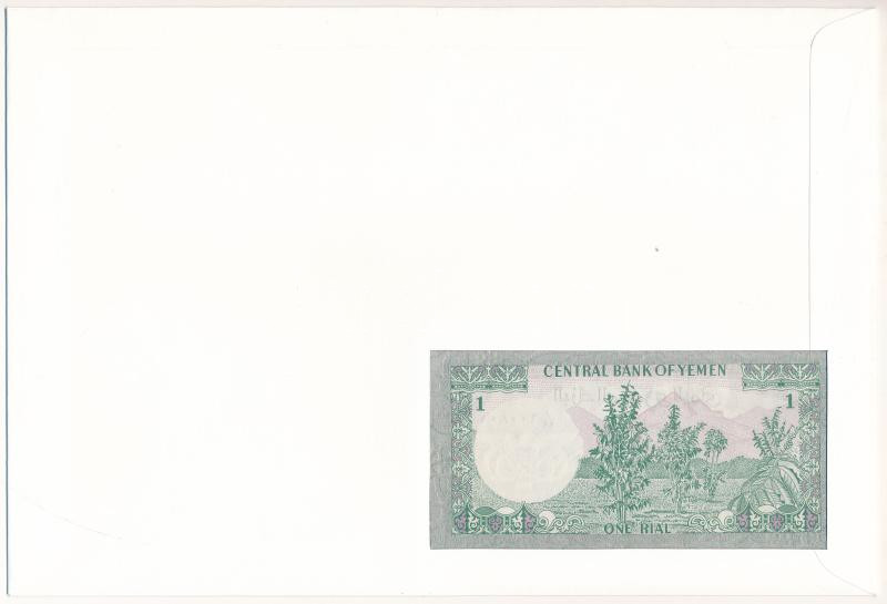 Jemen 1976. 1R borítékban, alkalmi bélyeggel és bélyegzéssel T:I Yemen 1976. 1 Rial in envelope with stamps and cancellations C:UNC<a href="https://www.darabanth.com/hu/gyorsarveres/432/kategoriak~Numizmatika/Ermes-es-bankjegyes-boritekok~1500004/J