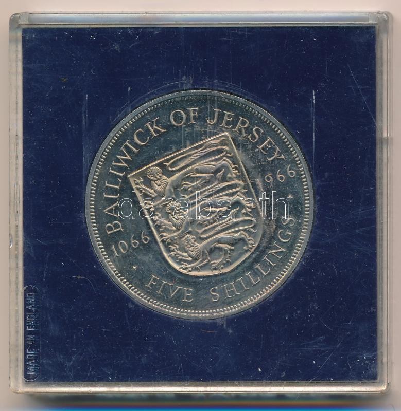 Jersey 1966. 5Sh Cu-Ni ‘A hastingsi csata 900. évfordulója’ műanyag tokban T:1 (eredetileg PP) fo. Isle of Man 1980. 25 Pence Cu-Ni ‘900th anniversary of the Battle of Hastings’ in plastic case C:1 (originally PP) spotted Krause KM#28<a href="https: