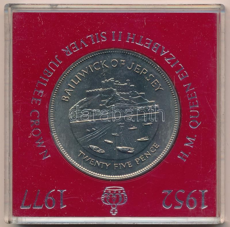 Jersey 1977. 25p Cu-Ni ‘II. Erzsébet / Ezüstjubileum’ műanyag dísztokban T:1 Jersey 1977. 25 Pence Cu-Ni ‘Elizabeth II / Silver Jubilee’ in plastic display case C:UNC Krause KM#44<a href="https://www.darabanth.com/hu/gyorsarveres/417/kategoriak~Numi