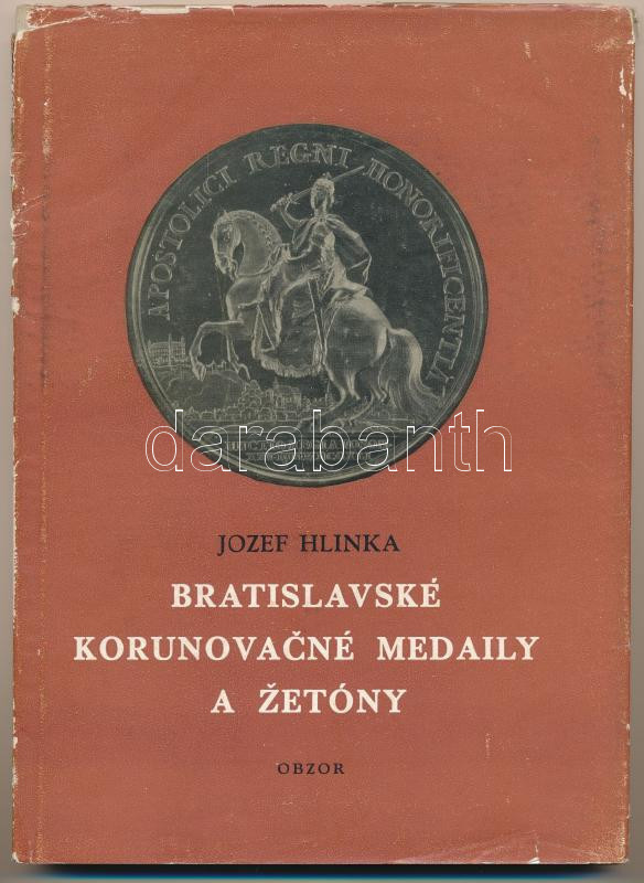 Jozef Hlinka: Bratislavsé korunovacne medaily a zetony (Pozsonyi koronázási érmek és jelvények – szlovák nyelvű). Obzor, Pozsony, 1966. Szép állapot, szakadt borító