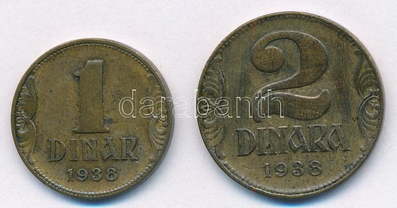 Jugoszlávia 1938. 1D Al-Br + 2D Al-Br nagy korona T:2 patina, karc Yugoslavia 1938. 1 Dinar Al-Br + 2 Dinara Al-Br large crown C:XF patina, scratches Krause KM#19,#20<a href="https://www.darabanth.com/hu/gyorsarveres/432/kategoriak~Numizmatika/Kulfo