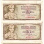 Jugoszlávia 1968. 10D (4x) sorszámkövetők ‘AH 6897849 – AH 6897852’ T:III Yugoslavia 1968. 10 Dinara (4x) consecutive serials ‘AH 6897849 – AH 6897852’ C:F<a href="https://www.darabanth.com/hu/gyorsarveres/418/kategoriak~Numizmatika/Kulfoldi-bankjeg