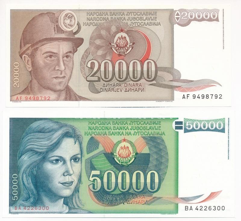 Jugoszlávia 1987. 20.000D + 1988. 50.000D T:I Yugoslavia 1987. 20.000 Dinara + 1988. 50.000 Dinara C:UNC<a href="https://www.darabanth.com/hu/gyorsarveres/420/kategoriak~Numizmatika/Kulfoldi-bankjegyek~2000015/Jugoszlavia-1987-20000D-plus-1988-50000