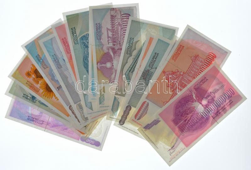Jugoszlávia 1992. 100D + 500D + 1000D + 5000D + 10.000D + 50.000D + 1993. 100.000D + 500.000D + 1.000.000D + 5.000.000D + 10.000.000D + 50.000.000D + 100.000.000D + 500.000.000D + 1.000.000.000D + 10.000.000.000D T:I-II / Yugoslavia 1992. 100 Dinara + 50