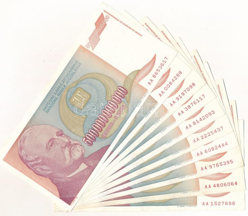 Jugoszlávia 1993. 500.000.000.000D (10x) T:II Yugoslavia 1993. 500.000.000.000 Dinara (10x) C:XF<a href="https://www.darabanth.com/hu/gyorsarveres/409/kategoriak~Numizmatika/Kulfoldi-bankjegyek~2500013/Jugoszlavia-1993-500000000000D-10x-TII-Yugoslav