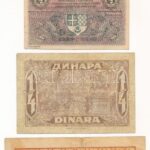 Jugoszlávia / Szerb-Horvát-Szlovén Királyság 1919. 1/2D (2xklf) az egyik ‘2K’ felülbélyegzéssel + 1D + 1921. 1/4D T:III,III- folt, az egyiken kis szakadás Yugoslavia / Kingdom of the Serbs, Croats and Slovenes 1919. 1/2 Dinara (2xdiff) with ‘2 Kronen’ ove
