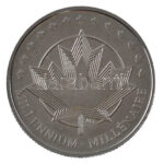 Kanada 2000. ‘Milleniumi Emlék’ numizmatikai és bélyeg emlékcsomag, benne leírással, hologramos lehúzható etikettel, 2 bélyeggel és egy ‘Canada 2000’ kétoldalas fém emlékérmével (24mm) fémdobozban (135x135mm) T:1-