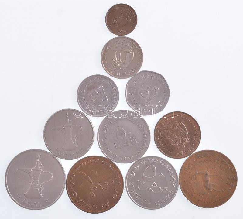 Katar és Dubai 1966. 10f Br + Katar 1973-1978. 1f-50f (5xklf) + Egyesült Arab Emírségek 1988-1998. 25f-1D Cu-Ni (5xklf) T:1-3 Qatar and Dubai 1966. 10 Fils Br + Qatar 1973-1978. 1 Fils – 50 Fils (5xdiff) + United Arab Emirates 1988-1998. 25 Fils – 1 Dirha