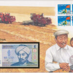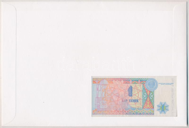 Kazahsztán 1993. 1T felbélyegzett borítékban, bélyegzéssel T:I Kazakhstan 1993. 1 Tenge in envelope with stamp and cancellation C:UNC<a href="https://www.darabanth.com/hu/gyorsarveres/431/kategoriak~Numizmatika/Ermes-es-bankjegyes-boritekok~1500004/