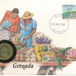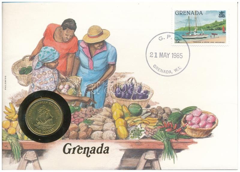 Kelet-Karibi Államok / Grenada 1981. 1$ Al-bronz felbélyegzett borítékban, bélyegzéssel, német nyelvű leírással T:1- East Caribbean States / Grenada 1981. 1 Dollar Al-bronze in envelope with stamp and cancellation, with German description C:AU<a hre