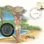 Kelet-Karibi Államok / Nevis 1965. 50c Cu-Ni ‘II. Erzsébet’ felbélyegzett borítékban, bélyegzéssel, német nyelvű leírással T:1 East Caribbean States / Nevis 1965. 50 Cents Cu-Ni ‘Elizabeth II’ in envelope with stamp and cancellation,