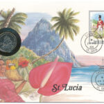 Kelet-Karibi Államok / Szt. Lucia 1981. 25c felbélyegzett borítékban, bélyegzéssel, német nyelvű leírással T:1 East Caribbean States / St. Lucia 1981. 25 Cents in envelope with stamp and cancellation, with German description C:UNC