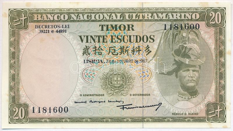 Kelet-Timor / Portugál gyarmat 1967. 20Esc T:I- fo. East Timor / Portugese colony 1967. 20 Escudos C:AU spotted Krause P#26<a href="https://www.darabanth.com/hu/gyorsarveres/409/kategoriak~Numizmatika/Kulfoldi-bankjegyek~2500013/Kelet-Timor-Portugal