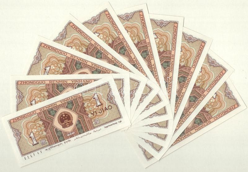 Kína 1980. 1j (10x) sorszámkövetők ‘C3H5764301 – C3H5764310’ T:I China 1980. 1 Jiao (10x) consecutive serials ‘C3H5764301 – C3H5764310’ C:UNC Krause P#881<a href="https://www.darabanth.com/hu/gyorsarveres/433/kategoriak~Numizmatika/Kulfoldi-bankje