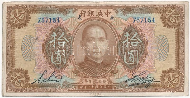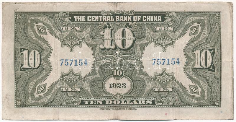 Kína / The Central Bank of China 1923. 10$ T:III,III- China / The Central Bank of China 1923. 10 Dollars C:F,VG Krause P#176