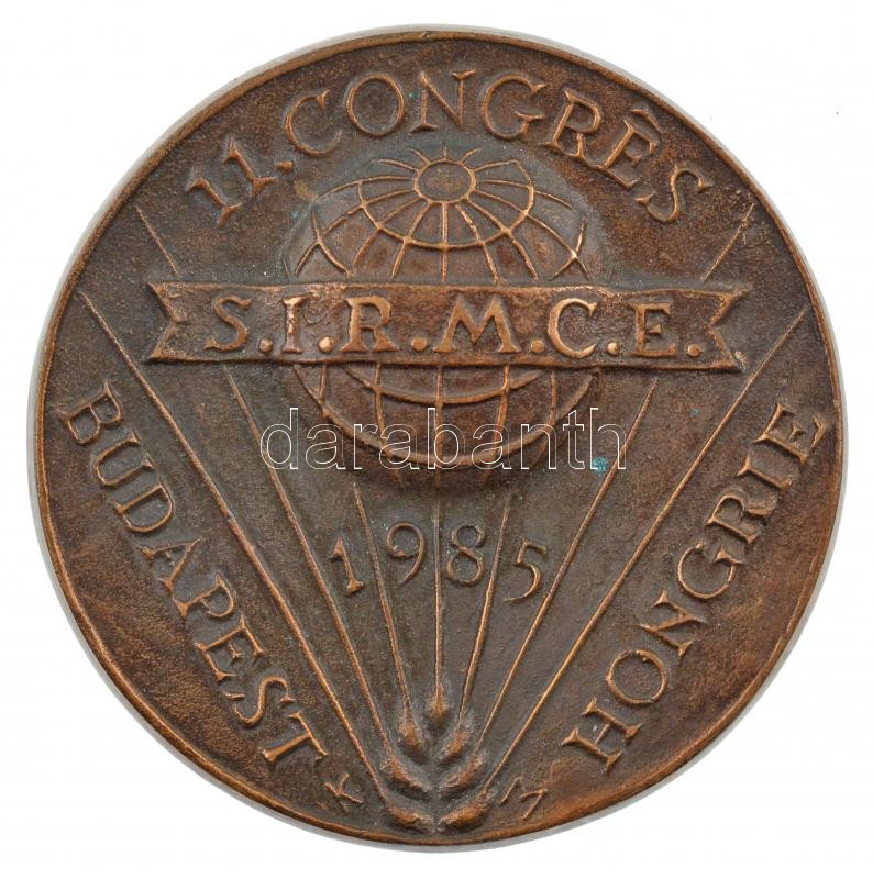 Kincses Mária (1926-1988) (?) 1985. ‘ 11. S.I.R.M.C.E. Kongresszus, Magyarország, Budapest’ egyoldalas francia nyelvű emlékérem (88mm) T:1- patina<a href="https://www.darabanth.com/hu/gyorsarveres/432/kategoriak~Numizmatika/Magyar-emlekveretek-plake