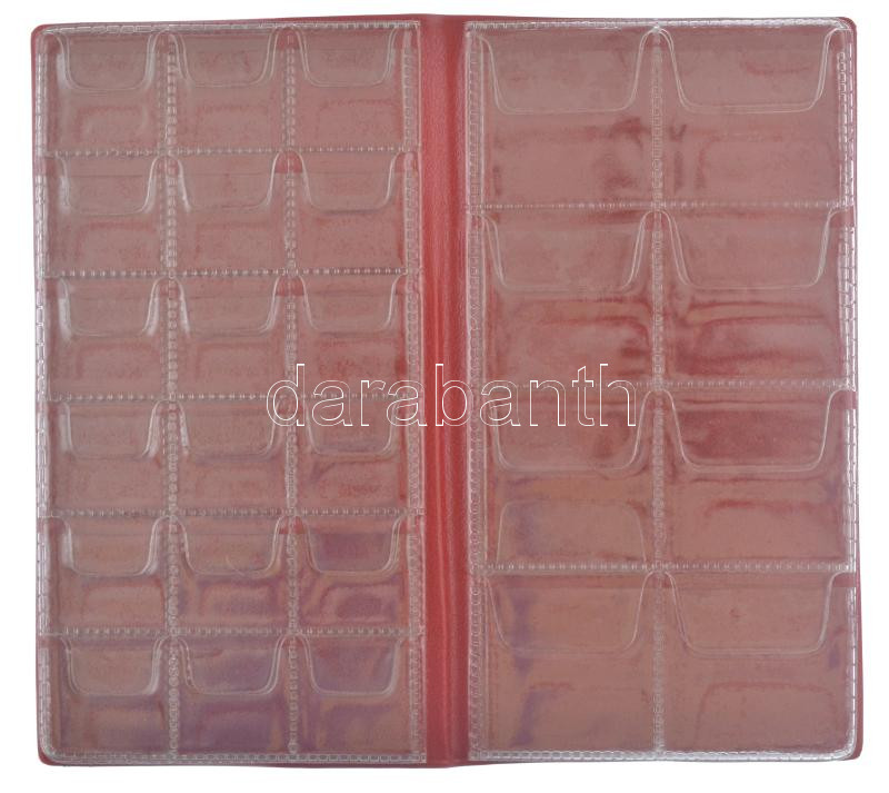 Kisalakú fekete műbőr érmetartó album 52 darab férőhellyel, 2xklf méretű érme számára, szép állapotban