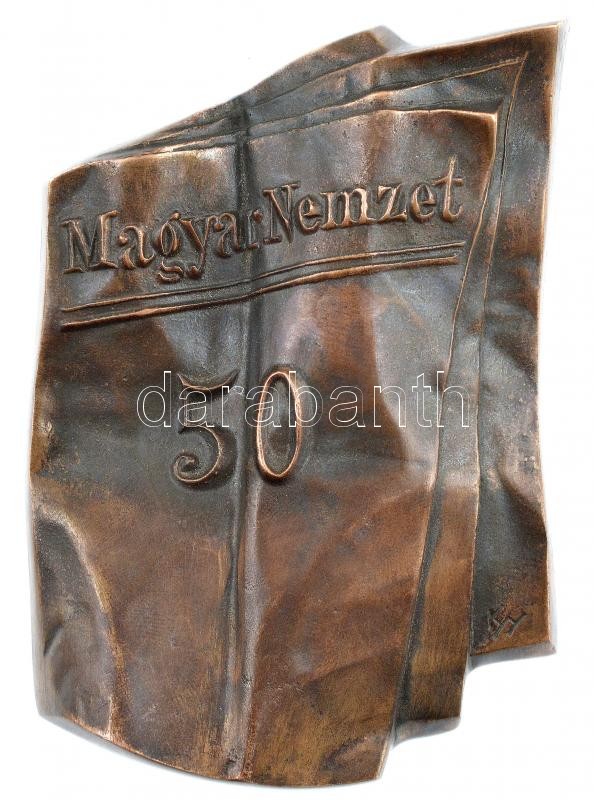 Kiss György (1943-2016) 1988. ‘Magyar Nemzet 50’ egyoldalas, öntött bronz plakett, hátlapon dátum és névre szóló gravírozás (125x85mm) T:2<a href="https://www.darabanth.com/hu/gyorsarveres/421/kategoriak~Numizmatika/Magyar-emlekveretek-plakettek~300