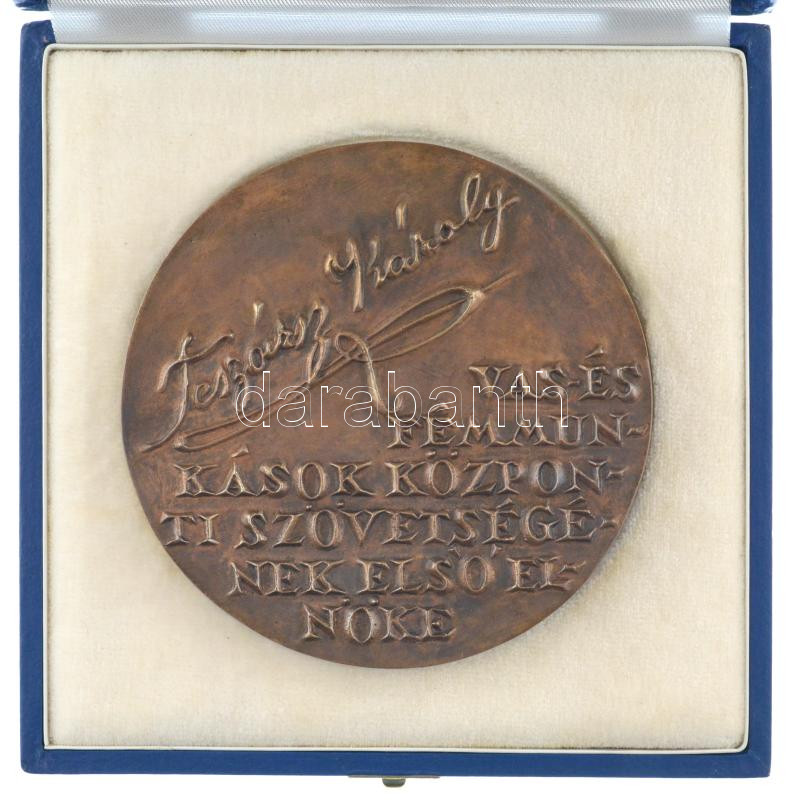 Kiss Nagy András (1930-1997) DN ‘Teszársz Károly – Vas- és Fémmunkások Központi Szövetségének első elnöke’ kétoldalas bronz plakett, eredeti dísztokban (109mm) T:AU<a href="https://www.darabanth.com/hu/gyorsarveres/438/kategoriak~Numizmatika/Magyar-