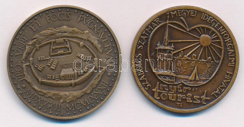 Kiss Sándor (1925-1999) 1982. ‘MÉE Szombathelyi csoportja – Jurisics Miklós / Kőszeg’ kétoldalas bronz emlékérem (42,5mm) + DN ‘Nyír Tourist / Csapoda’ kétoldalas bronz emlékérem (40mm) T:UNC,AU apró karc<a href="https://www.darabanth.com/hu/gyorsar