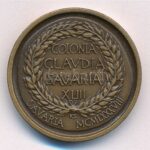 Kiss Sándor (1925-1999) 1988. ‘TICLAUDIUS CAESAR DIVAVE / COLONIA CLAUDIA SAVARIA XLIII – SAVARIA MCMLXXXVIII’ bronz emlékérem (29mm) T:1- Adamo SH9<a href="https://www.darabanth.com/hu/gyorsarveres/432/kategoriak~Numizmatika/Magyar-emlekveretek-pla