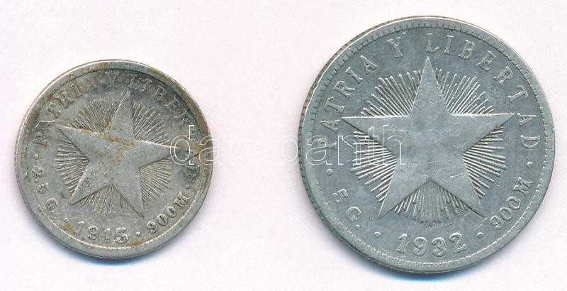 Kuba 1915. 10c Ag + 1932. 20c Ag T:3 ph. Cuba 1915. 10 Centavos Ag + 1932. 20 Centavos Ag C:F edge error Krause KM#A12, KM#13